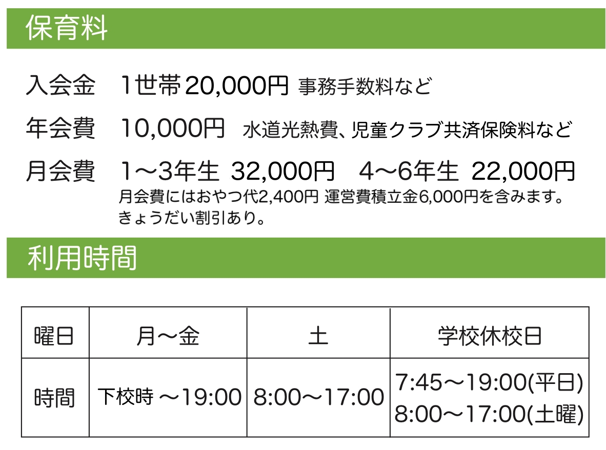 *きょうだい割引:1〜3年生が2人の場合、月会費合計から10,000円引きになります。