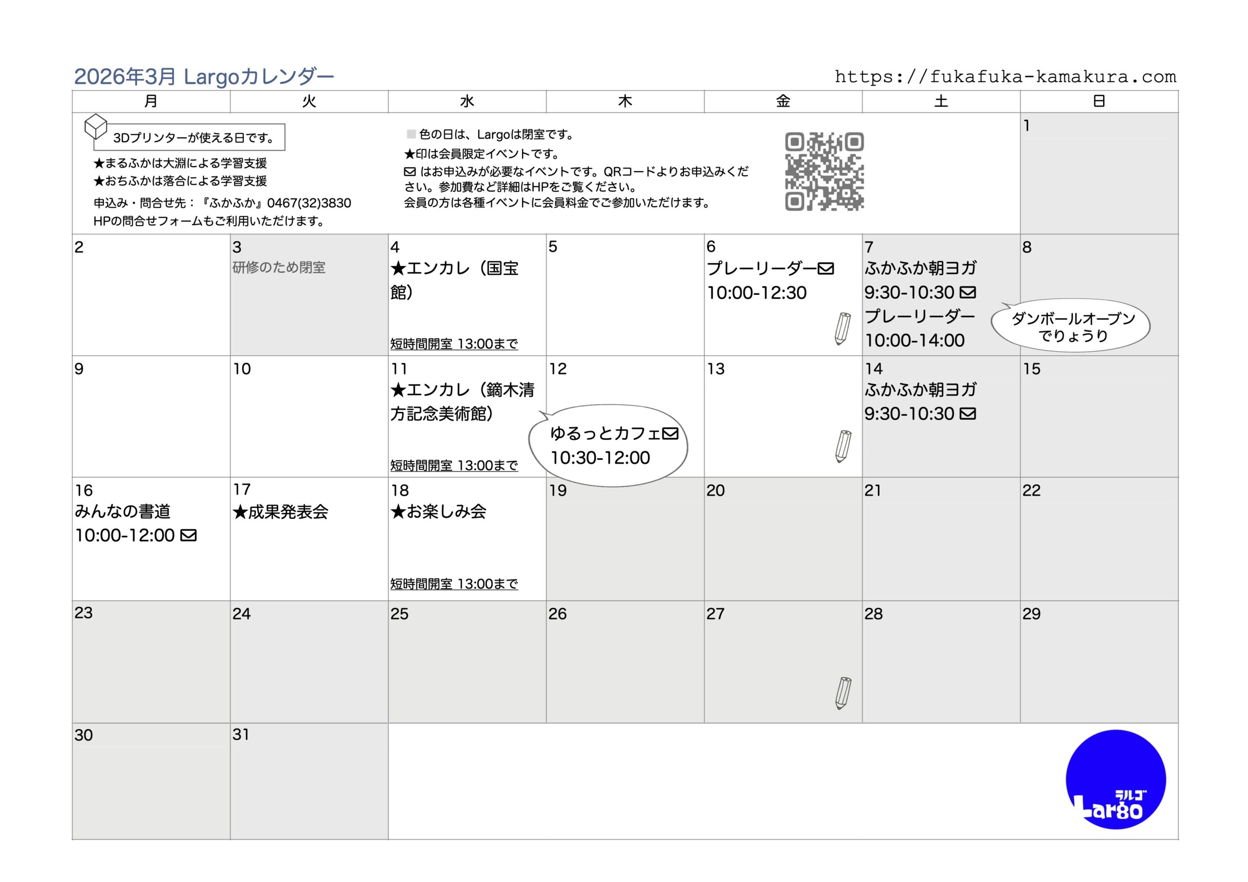 お申し込みはこちらから↓ イベント・ワークショップのお申込み ーーーーーーーーーーーー 3/4(水)地域食堂 3/6(金)平日のプレーリーダーと遊ぼう 3/7(土)ふかふか朝ヨガ 3/11(水)ゆるっとカフェ 3/14(土)ふかふか朝ヨガ 3/16(月)みんなの書道 イベントに関するお問合せ その他のイベント詳細はこちらから。 イベントカレンダーアーカイブ